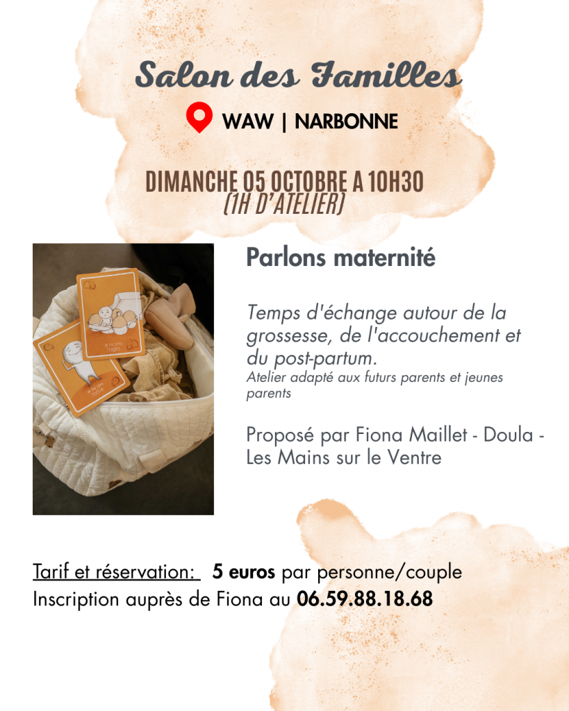 Salon des familles, Narbonne, Sortie en famille Narbonne, Sortir dans l’Aude, accompagnement parental Narbonne, Maternité Narbonne, activité enfants, atelier créatif, bien-être